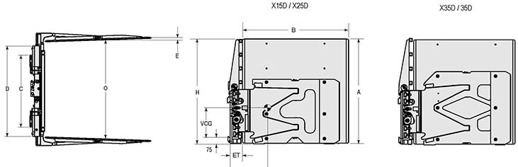 | Capacity 承載能力(kg) | Catalog Order NO 型號(hào) | Mounting Class 安裝等級(jí) | Opening Range張臂范圍(mm) | Arm Height臂高A(mm) | Arm Length臂長(zhǎng)B(mm) | Vertcial Center Of Gravity垂直重心VCG(mm) | Load Center載荷中心(mm) | Overall Width總寬D(mm) | Hook Spread上鉤外側(cè)間距(mm) | Weight 自重(kg) | Effective 失載距ET(mm) | Horizontal Center of Gravity 水平重心CGH(mm) |